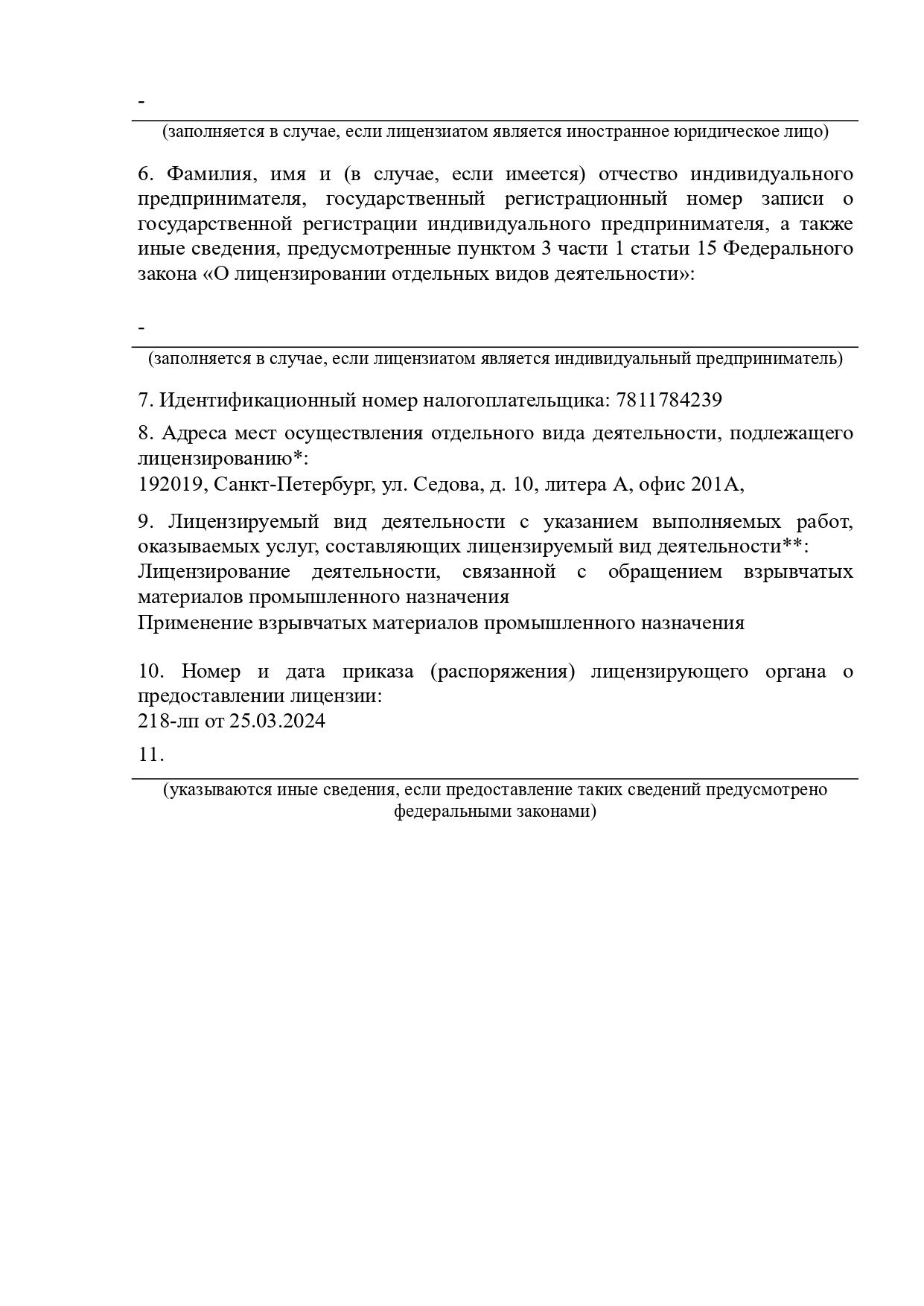 Лицензия на проведение работ по обследованию на взрывоопасные предметы и разминированию обособленного подразделения ГК «ЦЭИ» в лице ООО «Следопыт 5»